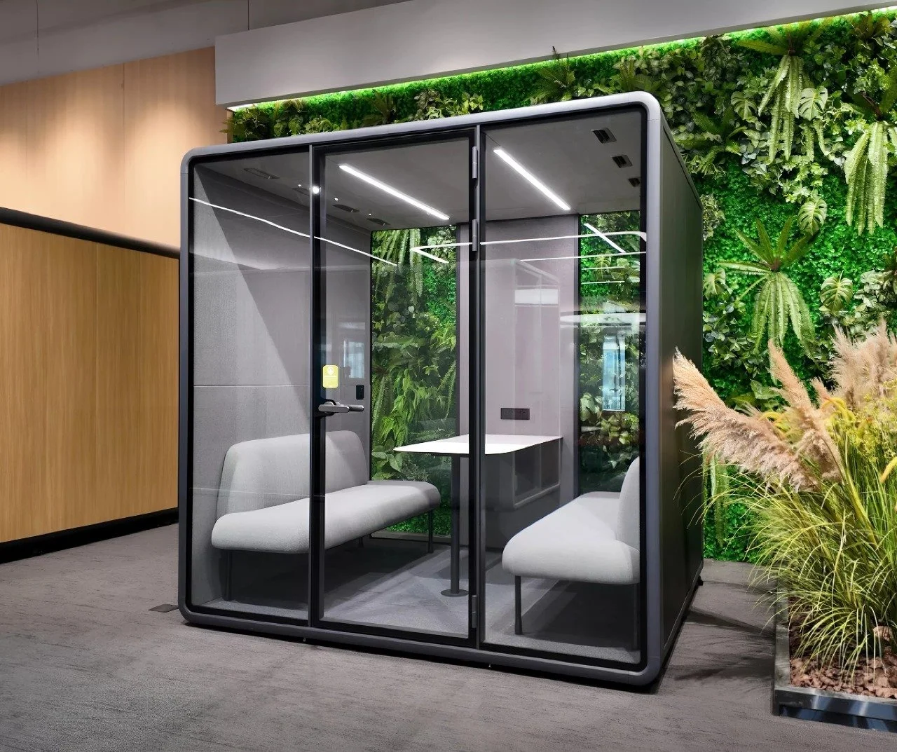 Our office pods provide private, comfortable spaces for focused work, meetings, and wellness.